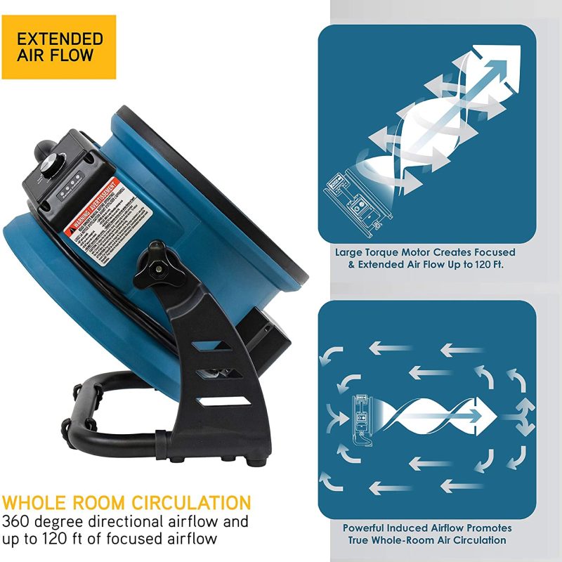 - Multi-purpose! Get ultimate whole room circulation with extended air flow to create a whole room circulation experience without the high cost of operation an A/C unit; or use for ventilation during projects or drying surfaces