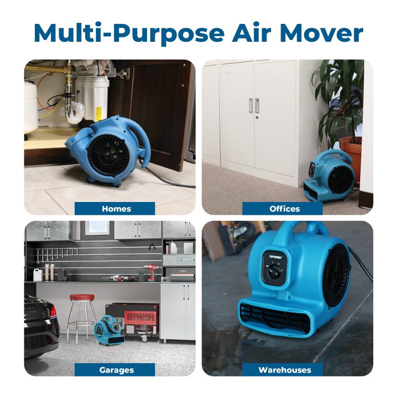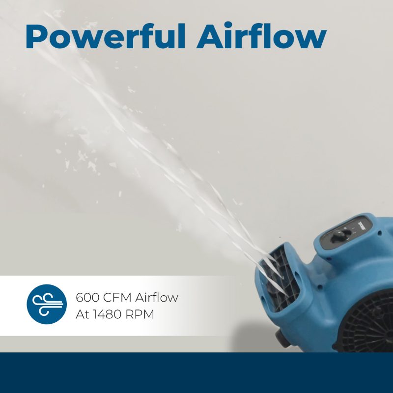 Ventilate and dry like a Pro at a fraction of the cost! The XPOWER P-80 mini mighty air mover blasts up to 600 CFM with its efficient 138 watts motor. Drawing only 1.2 Amps at its highest speed setting, this multipurpose air mover is a must have addition for your home or garage. Manufactured with rugged state-of-the-art injection mold technology, this mighty mini air mover is ideal for drying tight crawl spaces, beneath kitchen counters, inside cabinets, bathrooms, auto interiors, and more. The XPOWER P-80 mini mighty air mover features a 3-speed switch for full airflow control. Designed for easy storage and portability, the P-80’s stackable design features convenient wraparound cord storage and weighs less than 7 pounds.