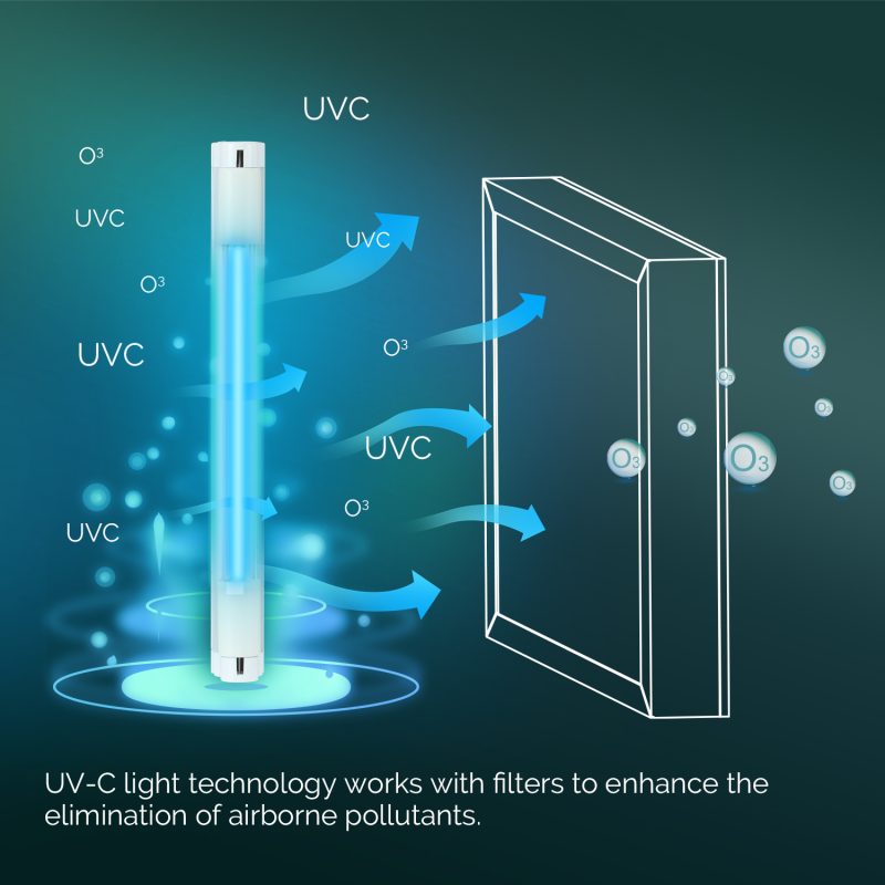 • 5-stage filtration system including activated carbon, HEPA filter, and TiO2 filter